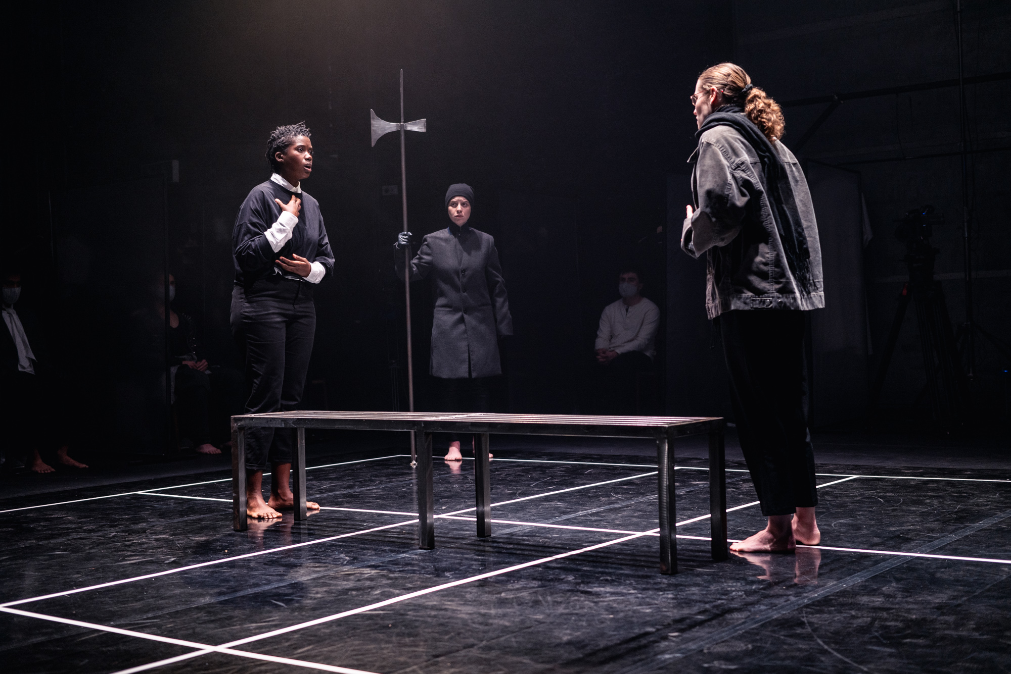 Hamlet (Sanaa Byfield), Bernardo (Mari Robakidze), Horatio (Ella Faye)